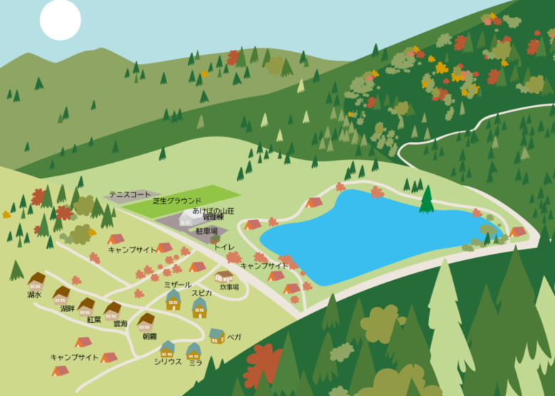 けび大池キャンプ&バンガロー村 全体マップ: