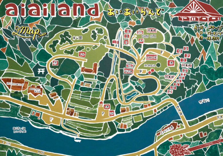 管理棟 炊事棟 自販機 売店 トイレ バーベキュー棟 森林工房 林間広場 東屋