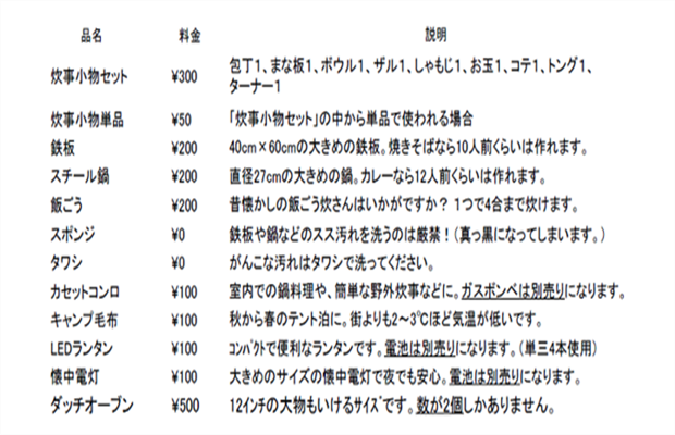 レンタル用品