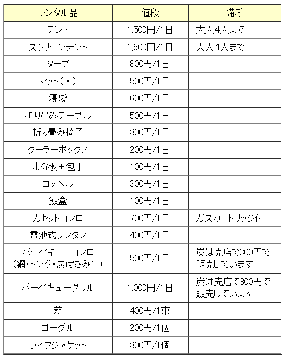 レンタル用品