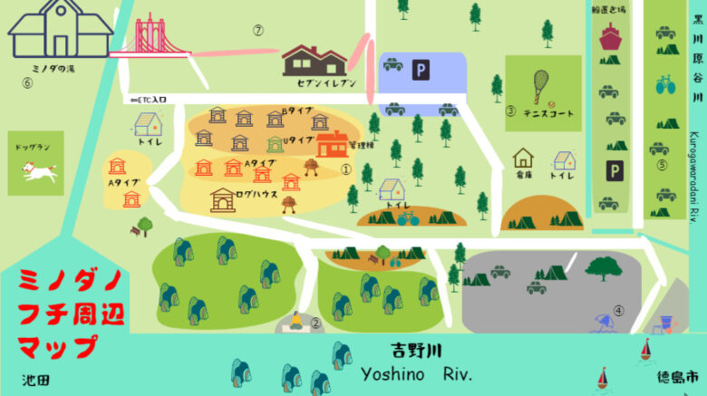 美濃田の淵キャンプ村 全体マップ: