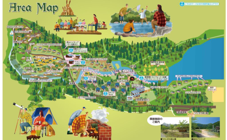 炊事棟 シャワールーム キャンプファイヤー場浴室 「露天風呂」 水辺のふれあいデッキ アスレチック広場