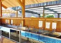 管理棟 トイレ 売店 炊事棟 シャワー棟 ピザ釜 川遊び 自販機