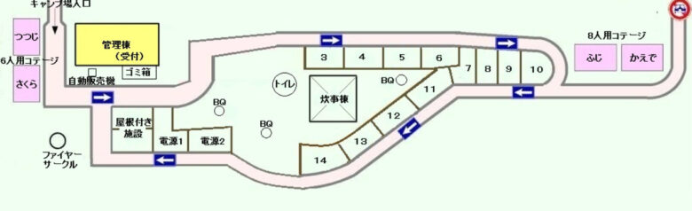 管理棟 炊事棟 自販機 トイレ シャワー ファイヤーサークル