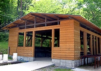 管理棟 炊事棟 避難棟 トイレ シャワー バーベキューサイト キャンプファイヤー場 うさぎ小屋 自動販売機 売店