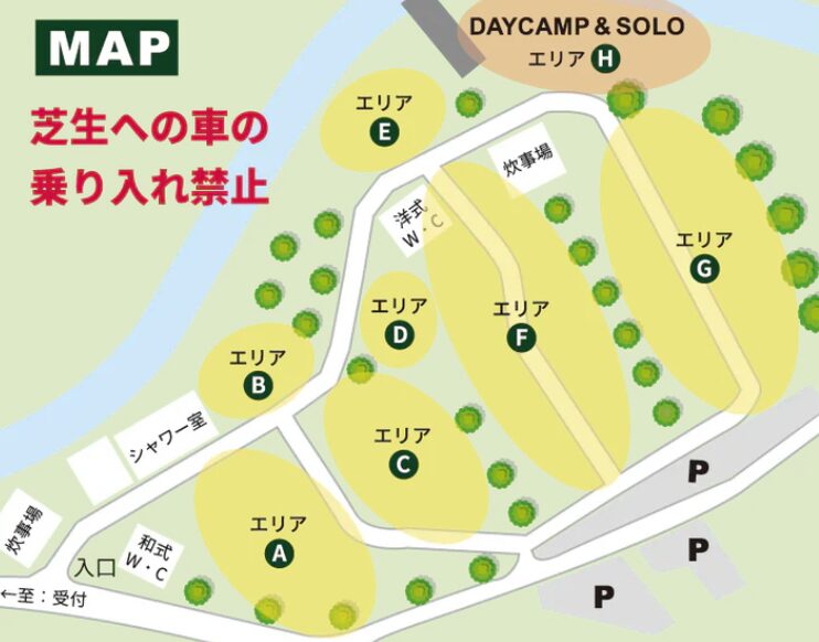 管理棟 トイレ 炊事場 シャワー室 東屋 アスレチック テニスコート 遊具